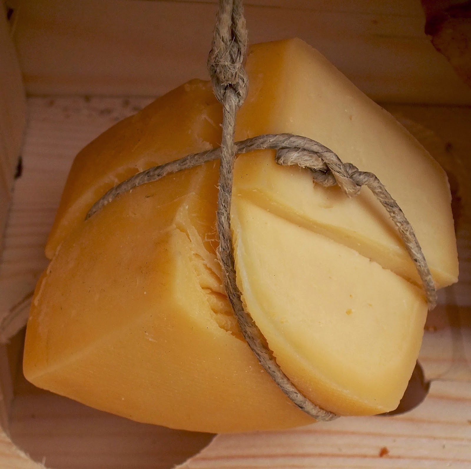 No, ez az ötlet úgy született, hogy egyszer régen láttunk egy Fald fel Amerikát részt, amiben főszerepet kapott a hamburger és a sajttal töltött egyedi késztésű húspogácsa. Ennek elkészítéséhez a házilag füstölt trappista sajtunkat használtuk fel, ami úgy készült, hogy Pé fél kg sajtot spárgával belógatott egy kiszperált öltözőszekrény tetejébe és az aljába kezeletlen fából parazsat csiholt, amiben kb 1- 2 napi füstölés után ez a finomság született: